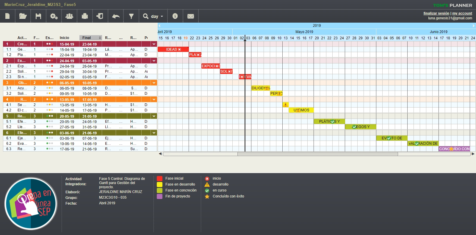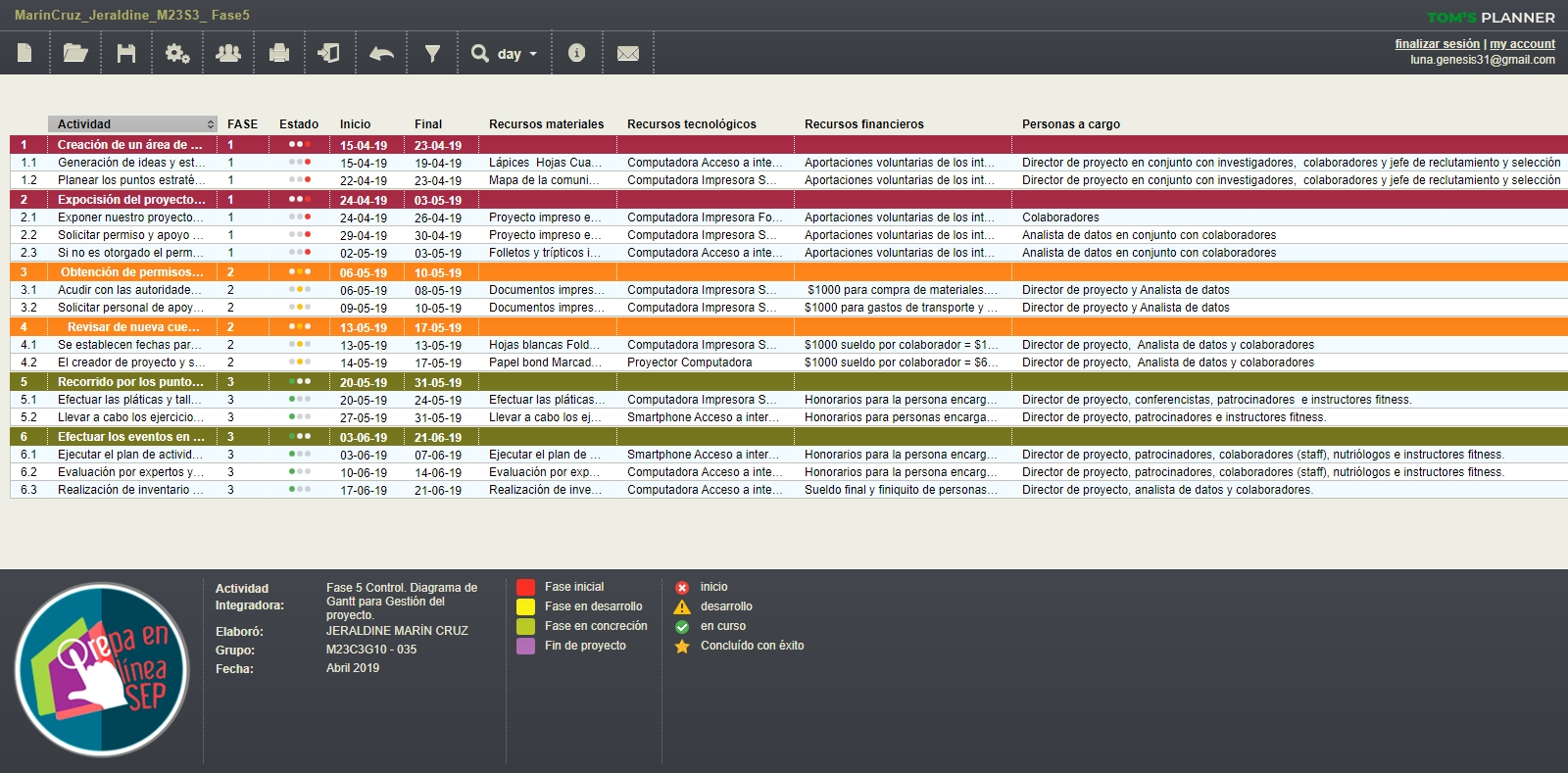 CONTROL. DIAGRAMA DE GANTT PARA GESTIÓN DEL PROYECTO